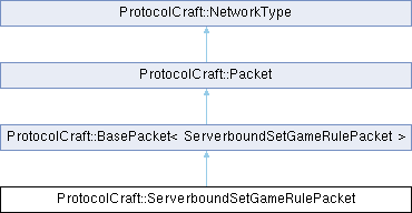 Protected Types inherited from ProtocolCraft::BasePacket< ServerboundSetGameRulePacket > | |